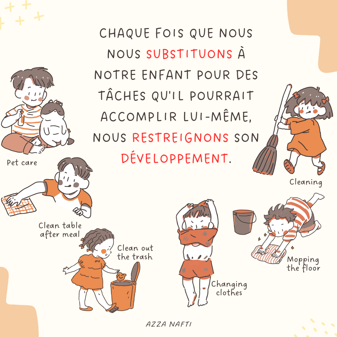 Lorsque nous prenons le relais de notre enfant en effectuant des tâches qu’il est capable de faire par lui-même, nous entravons son développement. En intervenant constamment et en ne lui permettant pas d’assumer ses responsabilités, nous limitons ses opportunités d’apprentissage, d’autonomie et de prise de décision. En laissant notre enfant prendre en charge ces tâches, […]